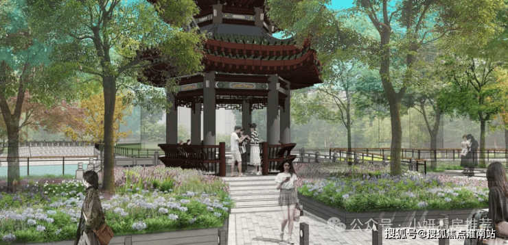 项目对面就是走马塘,开发商对河道进行了整治、绿化提升,还包括架空线入地工程等,预将打造开放、轻松、舒适的滨水公园。