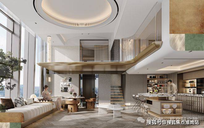 约4.2米的从容层高,赋予空间呼吸感与仪式感;流动的曲线语言,从立面延展至天花,勾勒出柔和且富有张力的场域轮廓;灵活可变的场景模块,则回应着居者动态的生活剧本。这一切,不止是形态的塑造,更是情绪的引导——光、空气与人在此自由交互,国际化美学被巧妙转译为日常的诗意。