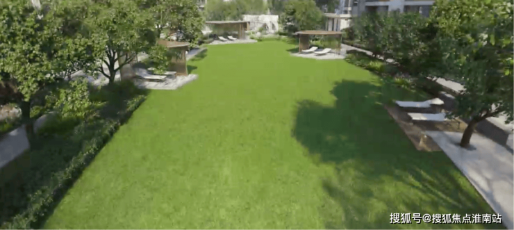 翠影草坪作为中央花园轴的核心,串联起尊享迎厅、水榭林涧、星际乐园、悠活天地等功能空间,将公园生活引入社区。
