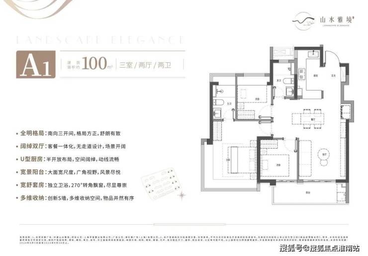 首付仅需56万起,就能在中建山水雅境买到一套建面约100㎡3房2卫神户型。