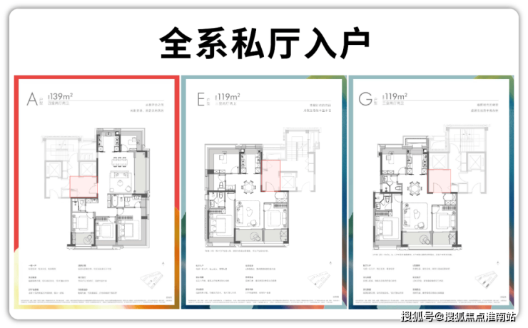 项目打破“类一梯一户仅属于150㎡以上大户型”的行业惯例,所有119-139㎡户型均标配私厅入户,让每位业主都能享受平等的入户仪式感。
