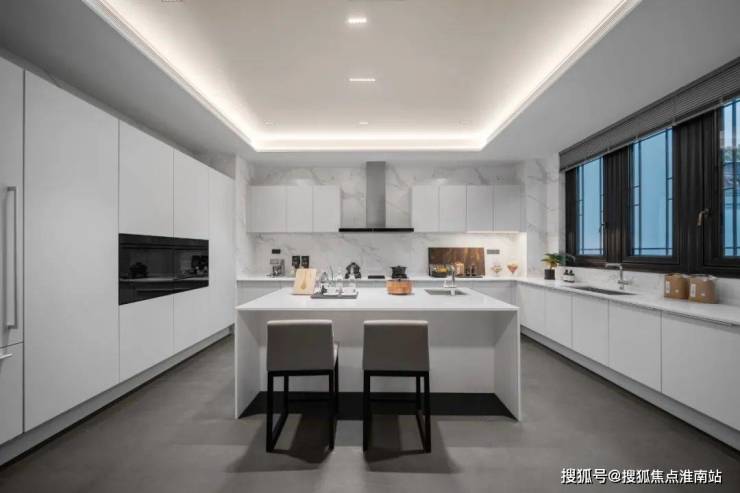 它的入口是 定制游艇甲板级入户门,客厅大面积铺装 意大利蓝金沙大理石,室内也全是 ARMANI/Dada、 意大利Poliform等一线大牌。