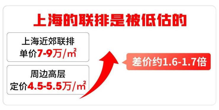比如,上海近郊联排单价普遍在7-9万/㎡,总价900-1500万;而周边高层/洋房约4.5-5.5万/㎡,联排与高层比值仅为1.6-1.7倍。