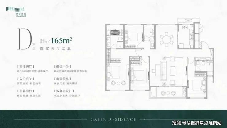 建面约165㎡4房为社区内的大户型,主要位于本次推出的楼王位置,四开间朝南、南向双套房,主卫竟然还是双台盆设计,妥妥豪宅配置。