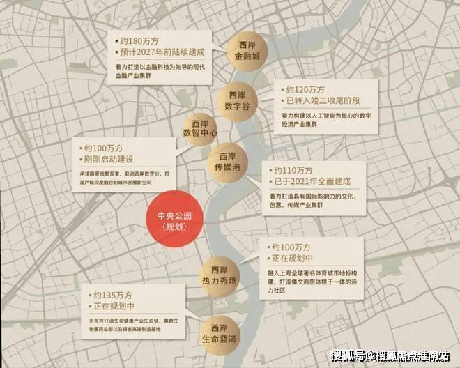 徐汇滨江打造“世界卓越水岸”,规划有百万方规划组团.徐汇滨江迄今已规划六个百万方组团,聚焦⼀港、⼀⾕、⼀城、⼀场、⼀湾、⼀心的六个百万⽅空间布局(⻄岸⾦融城、⻄岸数字⾕、⻄岸数智中心、⻄岸传媒港、⻄岸热⼒秀场和⻄岸⽣命蓝湾),而第七大组团“中央公园”,完美覆盖海上·清和玺所在上海植物园区域,未来将无界链接城市生态资源,促进徐汇滨江与城区无界融合、兑现徐汇滨江的高质量发展.