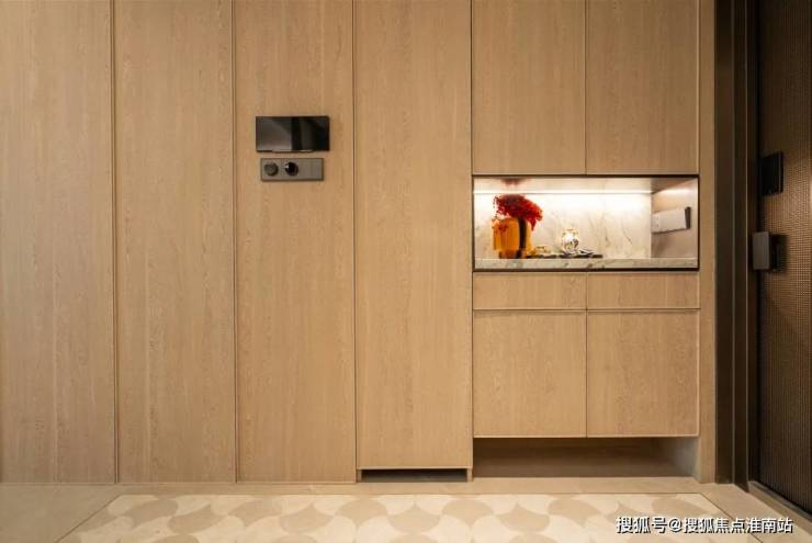 同时玄关柜底部也特意做了镂空,可以摆放拖鞋、换洗的鞋子、摆放扫地机器人等都很实用。