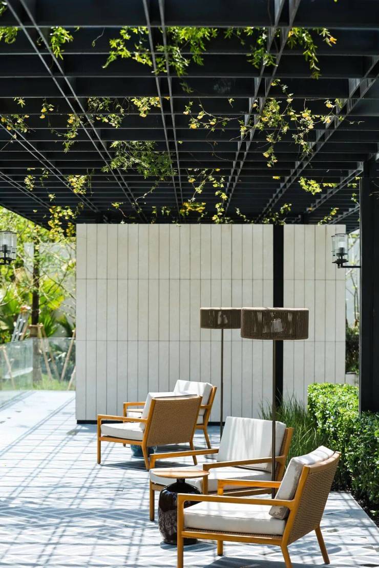 通过对光线、水系以及各种植物的运用,给业主创造了静谧、舒适的林下空间。