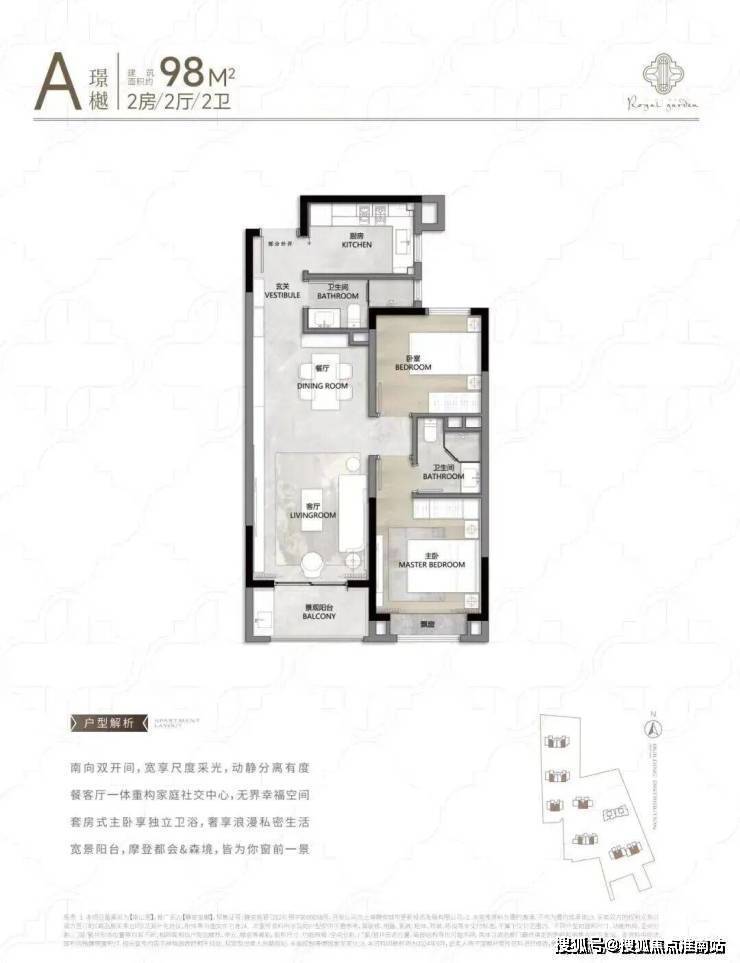 建面约98㎡宽阔两房,非常适合单身或是年轻的小家庭置业。其得房率最高约79%,相较于市面上大多70-75%的项目,实实在在地省下了不少空间的置业成本!