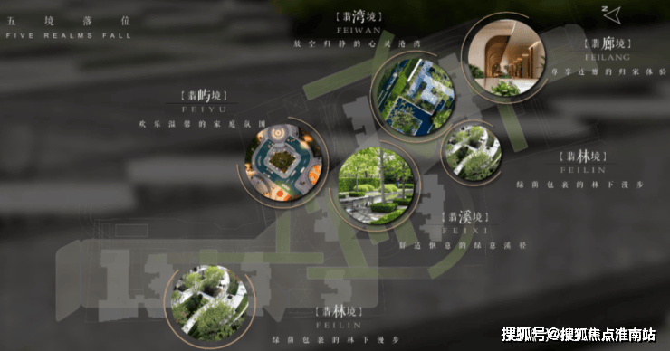 规划了“翡色五境”五大空间氛围,匠造融入时光、人文海派、自然与艺术、家庭与邻里的“四轴、三园、五区、一所”四大功能空间。