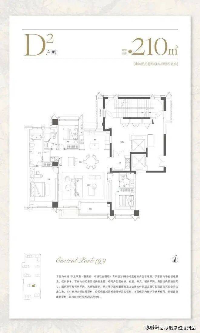 建面约210㎡,分为中间套与边套产品:
