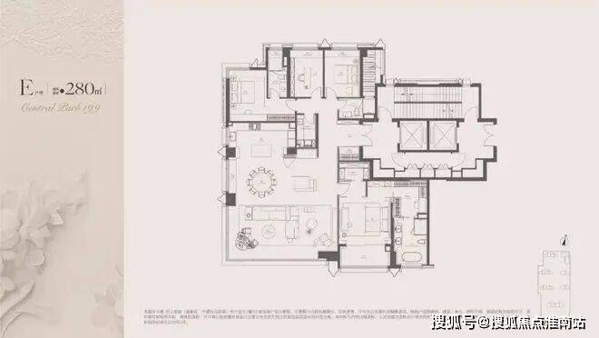 建面约190㎡ C户型,两梯两户,私享梯厅,家的玄关尺度,延伸至电梯厅,增加实际使用面积。入户处大师定制瓷板门牌画,私属感满满,打造专属归家仪制。