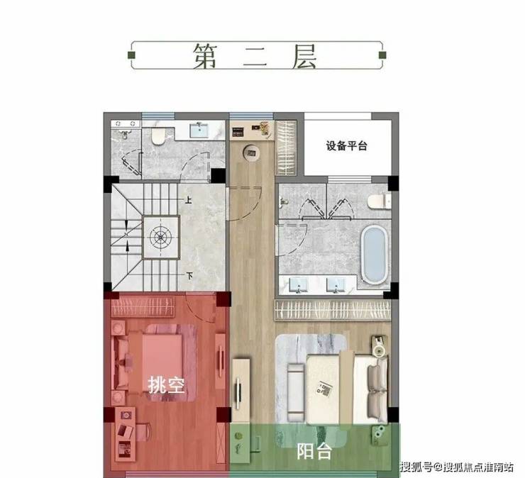 二层,可实现多样化布局。可改约6.4米挑高+南向阳台,根据家庭需要自由定制,可以是2房布局,也可以是家庭第二客厅,工作室、收藏间,灵活性较强。