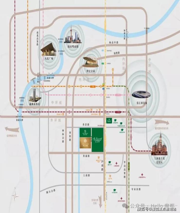 车行主干道:中环线、杨高路、沪南路、罗山路高架、外环线