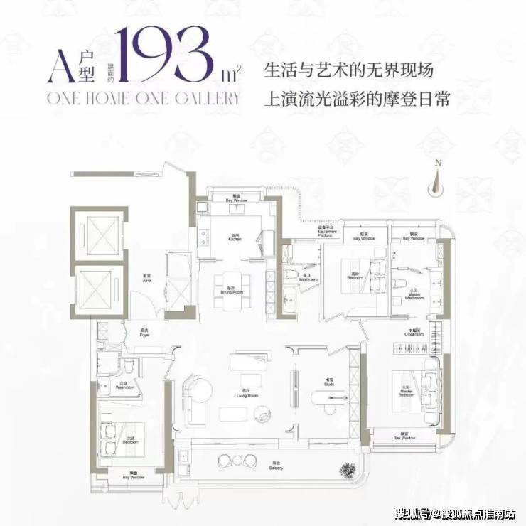 建面约193m²户型,主力总价3400万左右