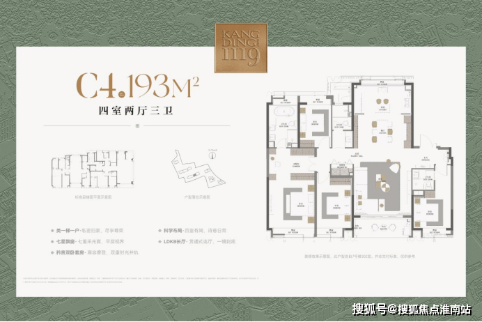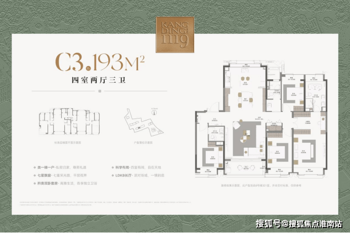 120㎡户型可灵活改造为1-3房,193㎡四房配独立电梯厅+LDKB长厅,适配多代同堂