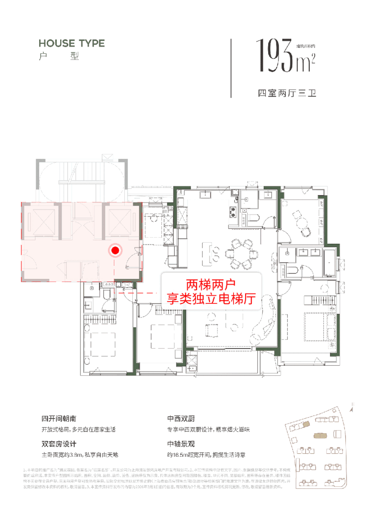 约 193㎡楼王大平层:南向四开间,面宽约 16.5 米,双套房设计,终极改善之选