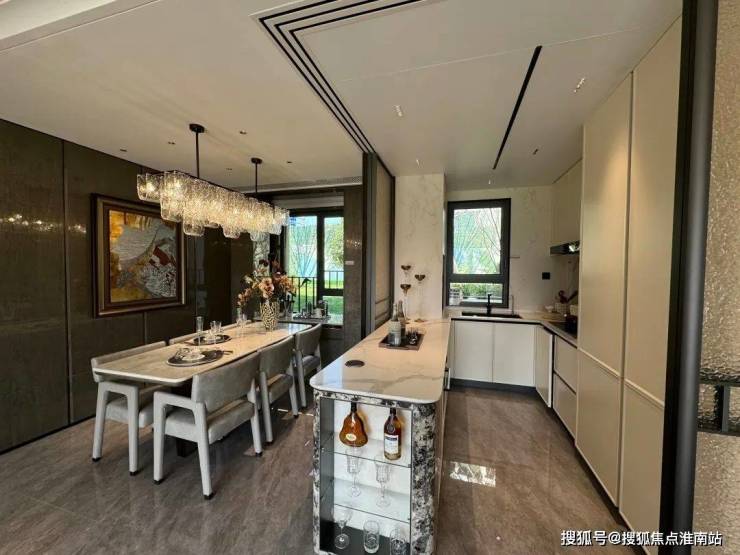 招商中旅·观境的解决方案是 “零无效空间”。通过整合餐客厨等公共区域厅,将原来南北厅中间的走廊空间融合到使用空间中,减少过道的面积,避免碎片化的空间带来的冗余浪费。大面宽,短进深,餐厅与客厅横向相连,每一平方米都物尽其用,把客厅升级为家庭互动主场。