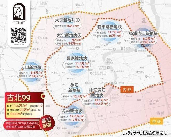 此时此刻的内环旁一个“面包价低于面粉价”的机会正在浮出水面,那就是位处古北国际社区、距内环步行距离仅约1.4公里、低密墅区小高层均价仅11.65万/㎡——古北99。