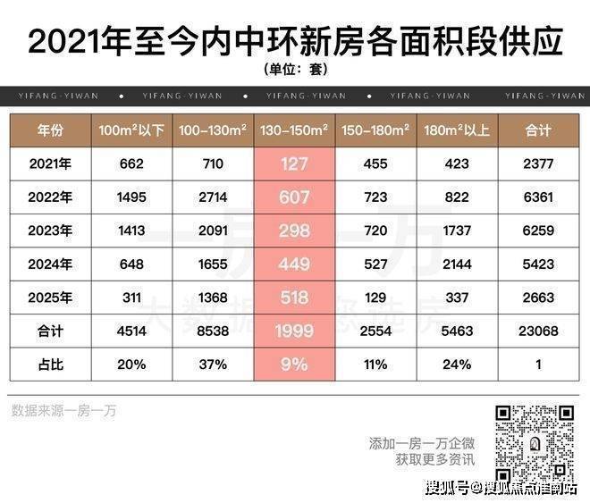 受制于多年7090政策影响,整个内中环这个面积段都是非常少见,五年来供应占比仅9%。
