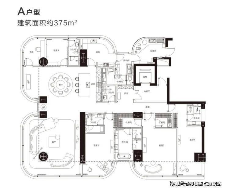 来自奢华酒店灵感的总统式四套房,提升家庭生活的私密感,尤其主卧空间,足以打造男女主人衣帽间、女主人化妆间。迈入主卫,超尺空间可安放巨型浴缸、高级台盆,仿如7星级酒店SPA空间,纵享身心的放松。