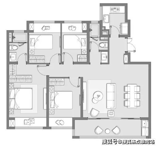 锦绣雅著建筑面积约125㎡四室两厅两卫户型,将四叶草的美好运用到空间布局上,让一幢房子
