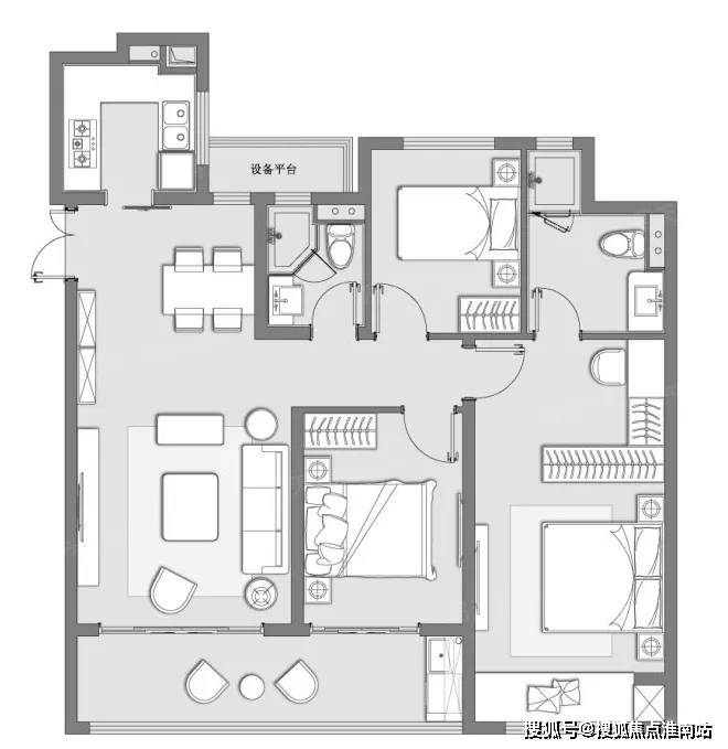 该户型为项目最大户型,超大横厅设计,餐客一体,空间感极佳;主卧带飘窗和独立卫生间,客卫完全干湿分离,生活舒适度较高。