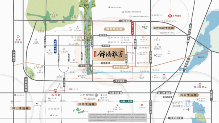 锦绣雅著择址相城元和正芯,近邻苏州北站、春申湖快速路,地铁2号线蠡口站仅600米。