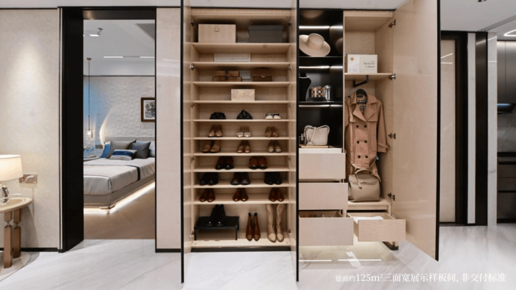 收纳上,约125㎡4房全屋拓展约12㎡收纳空间,客餐厅双边收纳可存200双鞋及大件物品,主卫配女神柜与美妆冰箱。装修方面,采用骊住、杜拉维特、博世等品牌。