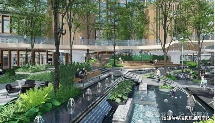 值得一提,商业景观有三大主场景,分别为森感公园、九曲花街、花园大道。其中森感公园里约40%都是超过十米的大树,绿意盎然。