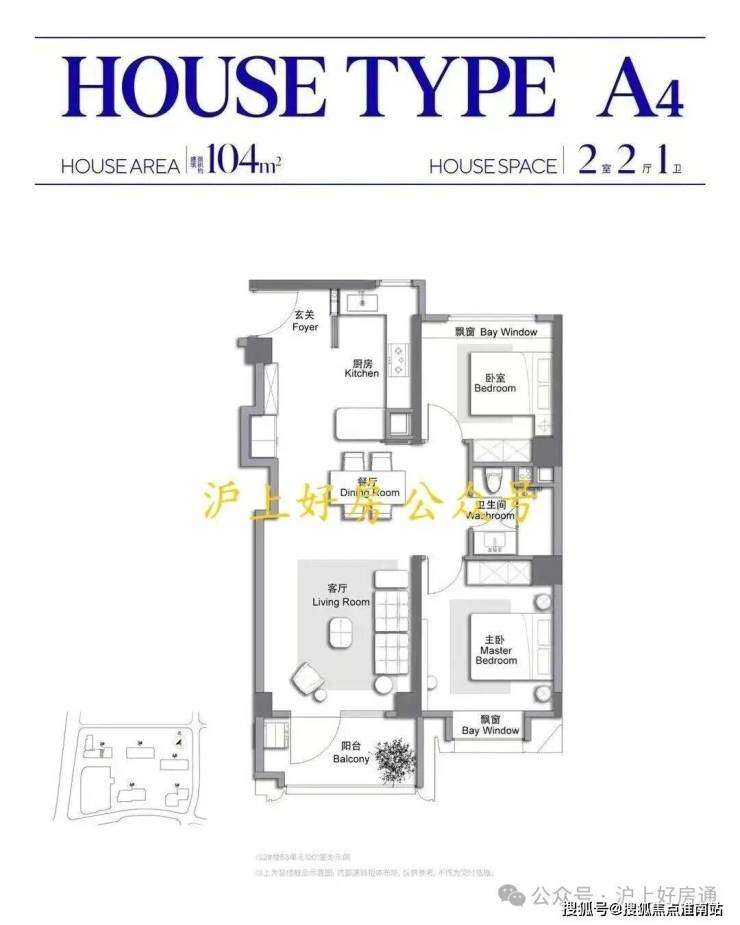 建面约104㎡2房户型▼