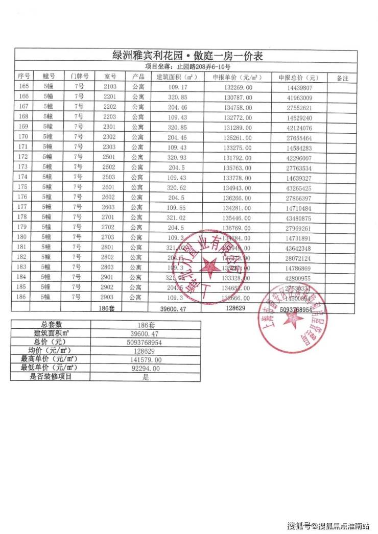 上期一房一价表如下: