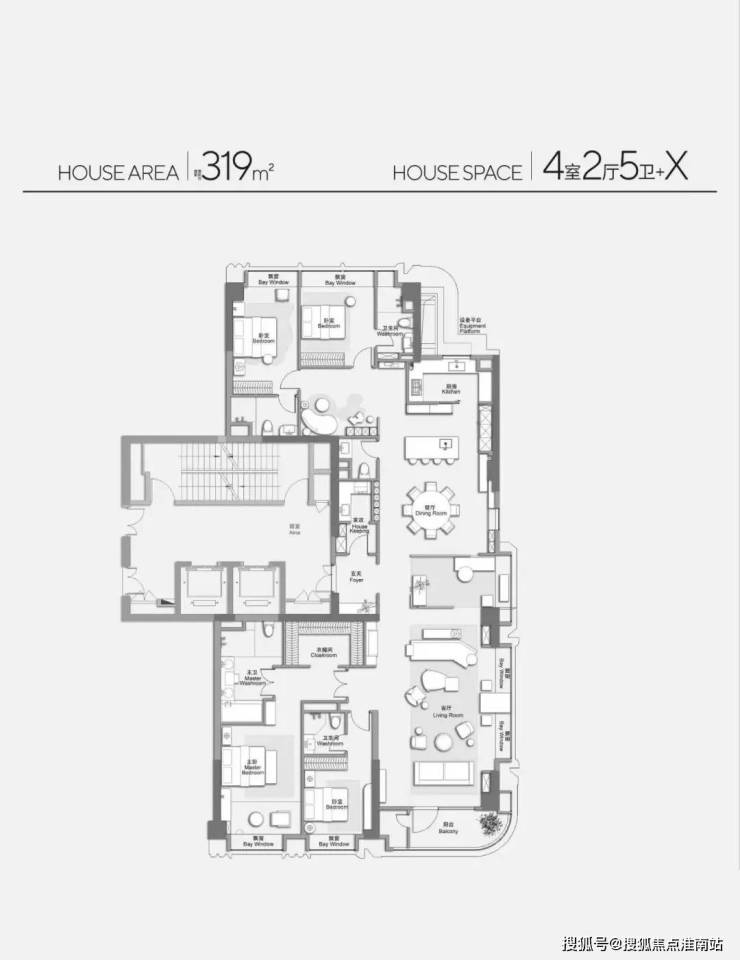 ▼ 建面约319㎡4房2厅5卫