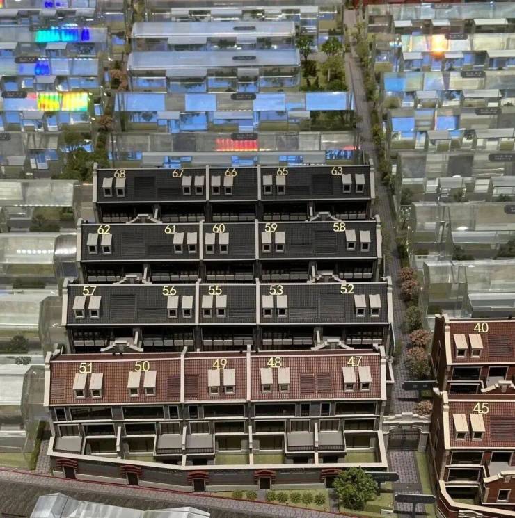 地上2-3层+挑高地下室,实用面积超150%(约455-600㎡);每户附赠15-60㎡私家庭院、观景露台,地下挑高空间可改造家庭影院/酒窖/藏品室,外立面采用手工凿毛石材、红砖及铜质线条,复刻海派石库门经典肌理。