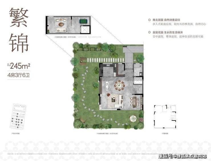 户型亮点:南北花园(最大190㎡)、地下室、露台、挑空客厅