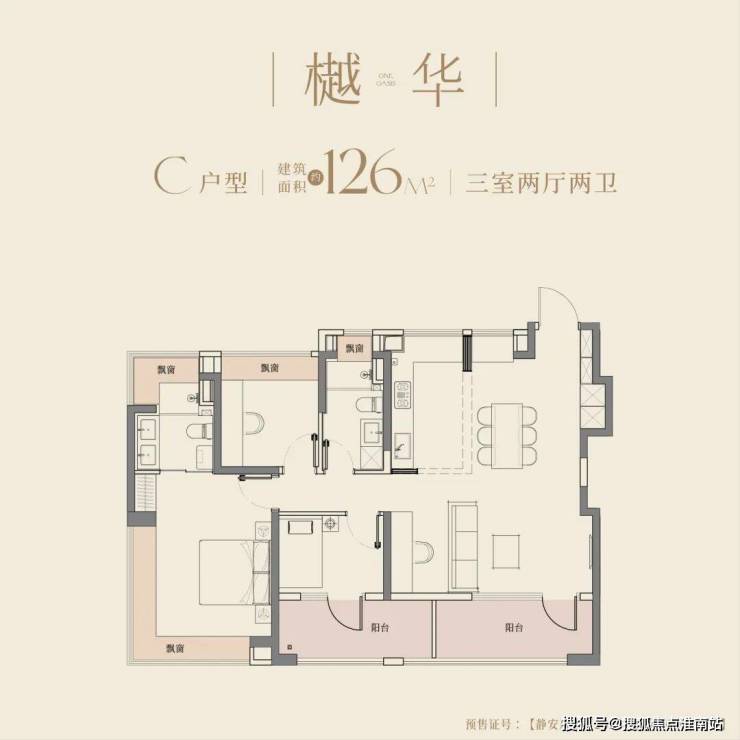 94㎡三房两卫:三阳台 + 全景飘窗,最高可拓展约 19㎡