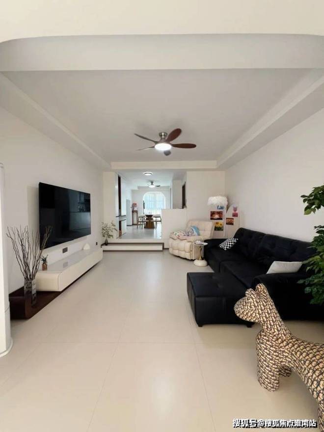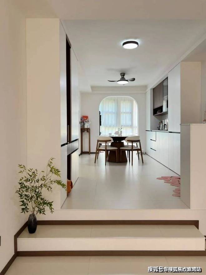 2、客厅与餐厅之间以台阶连接:用最原始的“高差”手段,以零占地的垂直维度实现分区,保留90%以上的视觉通透性。