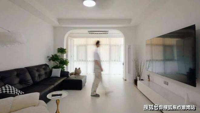 黑色棉花糖沙发与白色地砖形成昼夜并置的隐喻,如同把乔治·莫兰迪的静物画转化为三维空间。就像业主所说:“用最少的元素表达最丰富的内涵。”