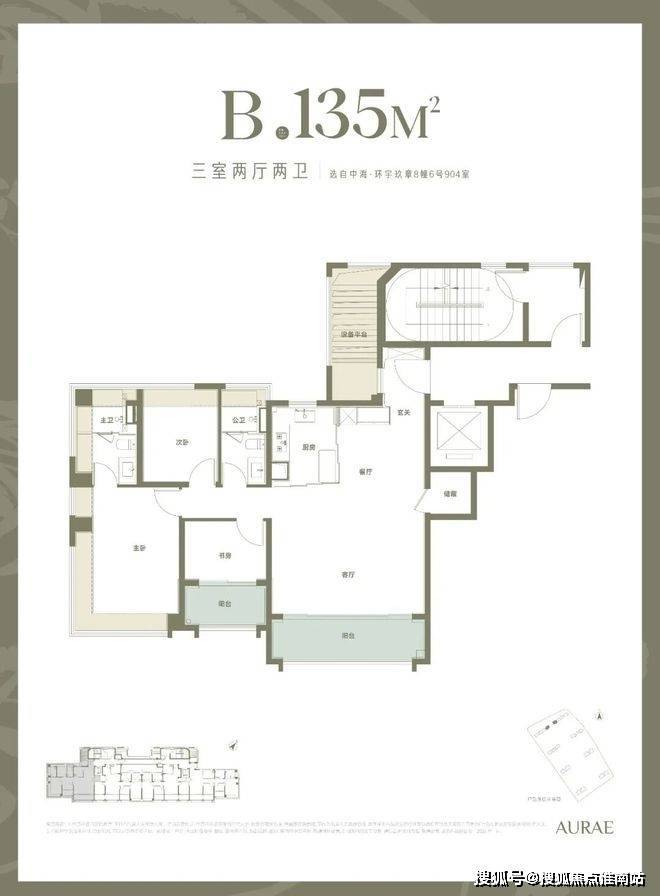 4、【新规后大三房】135平户型,三阳台,全飘窗,实得率约93%。每个卧室空间尺度舒适,这个户型非常适合需求强收纳的粉丝,收纳总量可达32.5平,实现收纳自由;