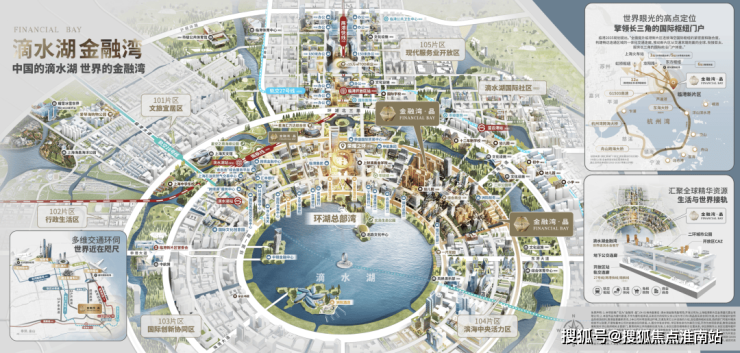 约2公里金融湾,规划约360万方融合环湖总部办公、高品质住宅、高端商业体、高品质教育等多元业态的城市综合体,是新片区跨境金融总部集聚、金融业务创新的承载区,云集大批头部金融机构,将对标全球知名金融中心,成为中国金融开放与创新发展的前沿高地。