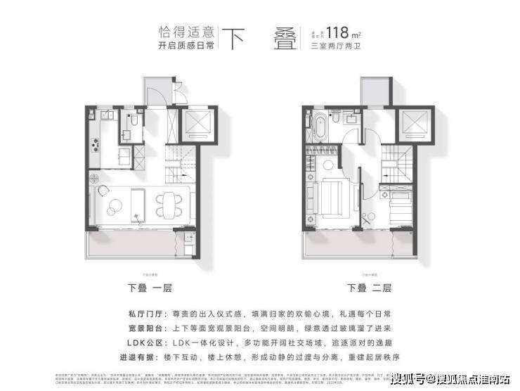 设计亮点:公建化立面、IMAX观景阳台、LDK一体化空间,部分户型带庭院或露台