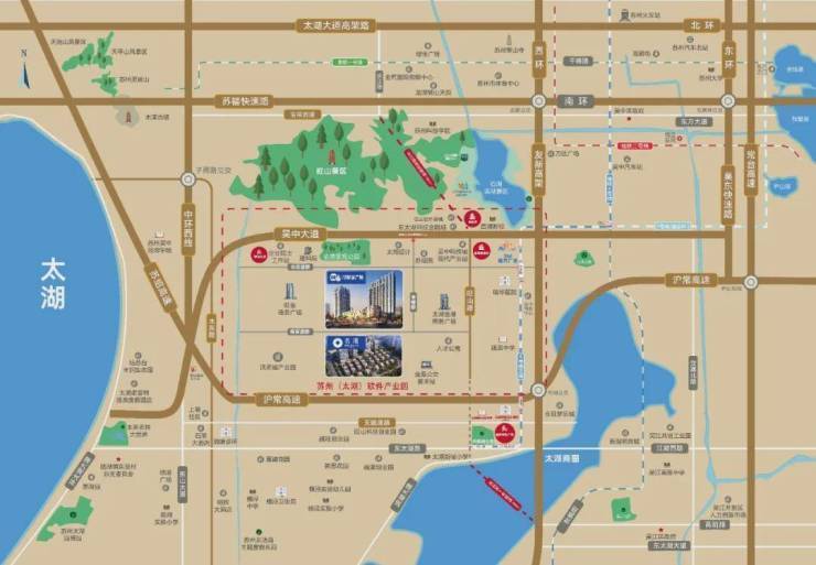 中国・苏州・吴中区横泾街道南官渡路与重楼路交汇处(东太湖科技金融城核心,太湖新城辐射圈,低密企业总部集群)