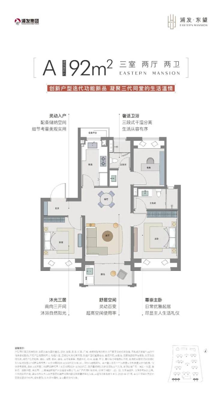 浦发上品推出建面约92-127㎡的3-4房,在所有户型设计上至少为三开间朝南,这对于任何家庭结构的购房者来说,都能享受到更好的采光、通风、视野。