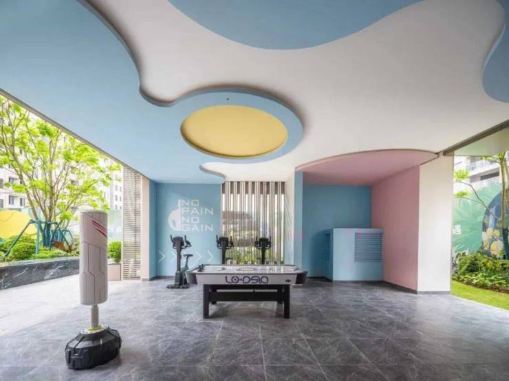社区内还有三大复合功能架空层空间,包括会客休闲、儿童活动、轻氧健身,能够让家庭成员在不同场所自得其乐。
