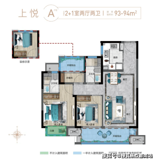 上悦A户型建面约93-94㎡