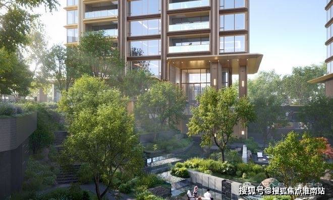 金茂·璞元社区整体抬高1.3-1.4米,下沉庭院景观高差近7米。把峡湾、密林、溪涧、山丘都纳入其中!