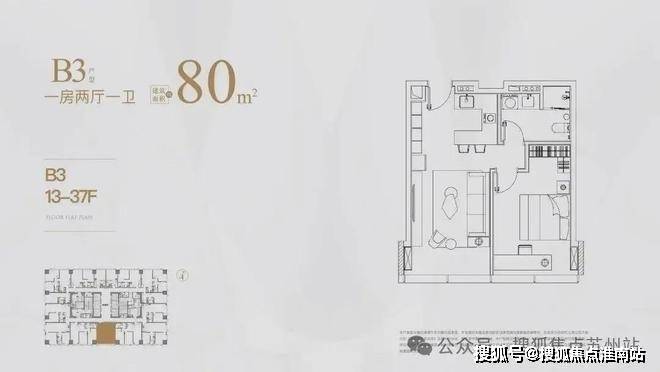 建面约80-88㎡,位于13-24F,客餐厅厨房都有功能更齐全