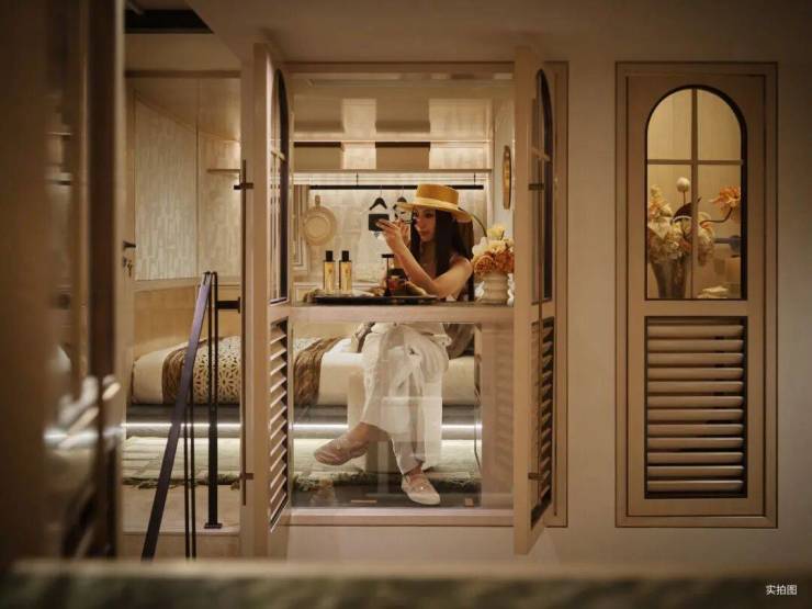 沿楼梯缓步而上,空间变得安静而私密,进入 「主理人专属领域」。这里有两间各自独立、功能完备的套房,都配有独立盥洗室,让亲密家人既彼此相邻,又保有自在的边界。空间内敛地运用了香港瑰丽酒店同源的奢装基因,从肌理细腻的材质、克制优雅的色系,到智能化、人性化的细节收口,无不诉说着一种无需言明的奢适感。