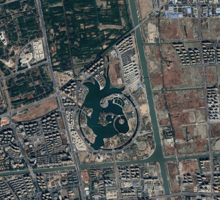 上海之鱼方案由拉瑞·奚伯斯设计,灵感来自中国人对“鱼”的美好寓意,以大地雕塑的手法开凿而成,整体形似一条金鱼,内湖名为金海湖,为上海面积第二大人工湖。