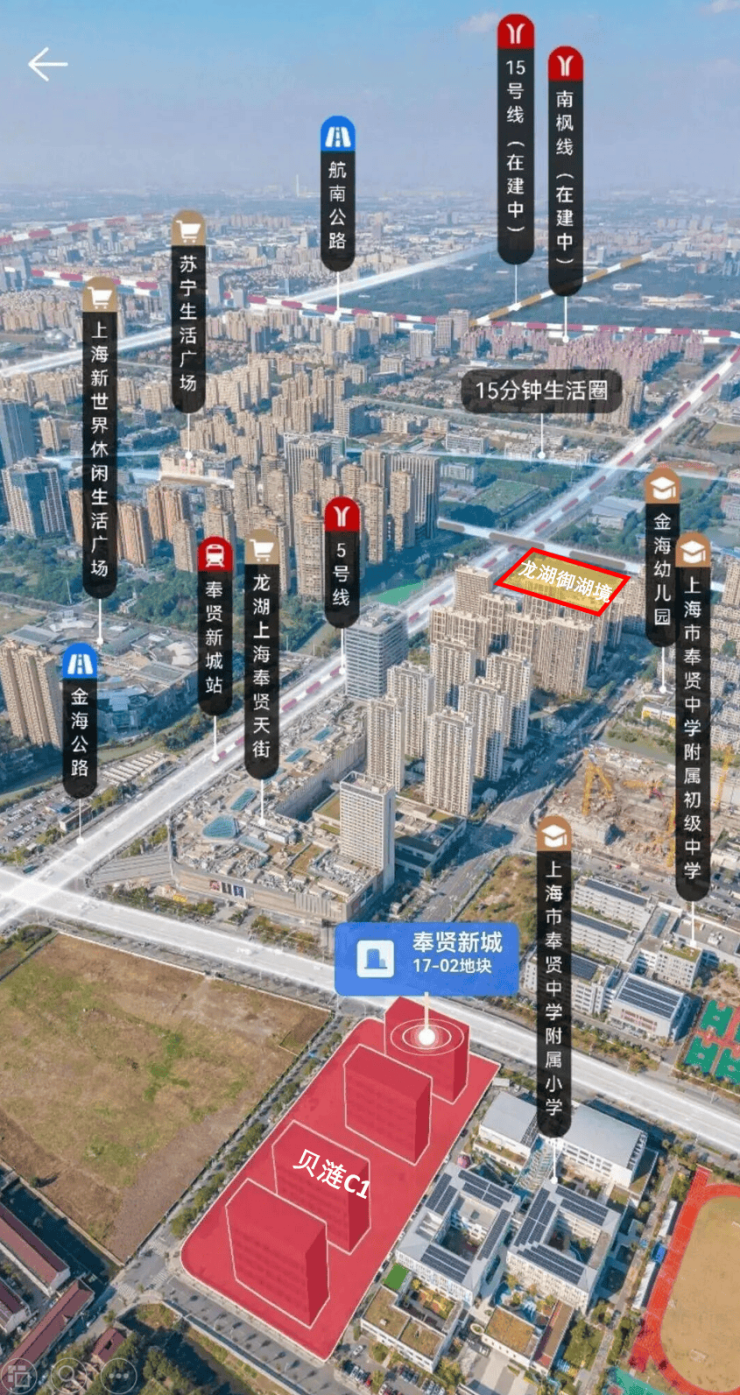 我发现离贝涟C1不远处有个龙湖的项目,叫做龙湖奉贤御湖境,是贝壳最直接的竞争对手。(位置对比如上图)