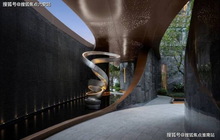 当波纹装置在超长界面上流转,光影与金属的碰撞如潮水轻吟,一场关于归家的仪式悄然开启。人车分流的静谧,精工石材的温润,艺术的波纹在夜色中泛起涟漪,仿佛天地初开时的一抹温柔,为每一位归者献上无声的礼遇。